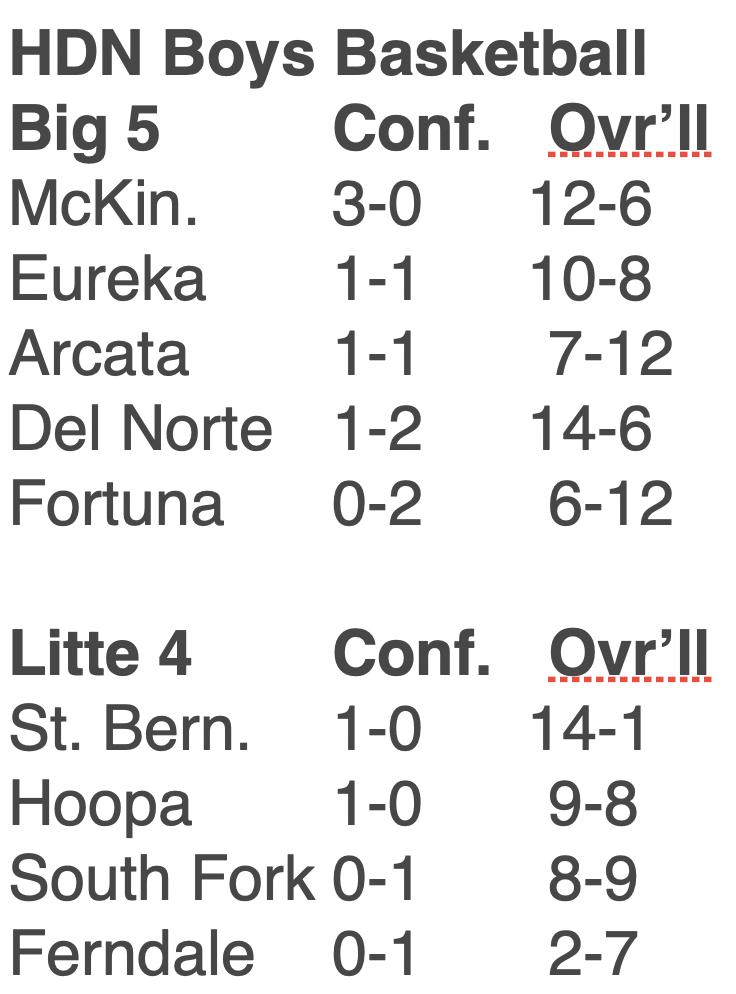 They are tied with Arcata for the Big 5 lead, with the two schools set to play each other next Wednesday night in what will be a key game for both.